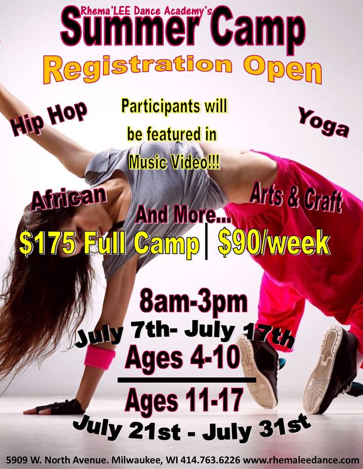 ATTENTION! Are you & your family ready for the summer? Does your child love to learn? Love to dance? If you all are in the Milwaukee area or will be this summer, be sure to enroll your child in Rhema’LEE Dance Academy’s Summer Camp!